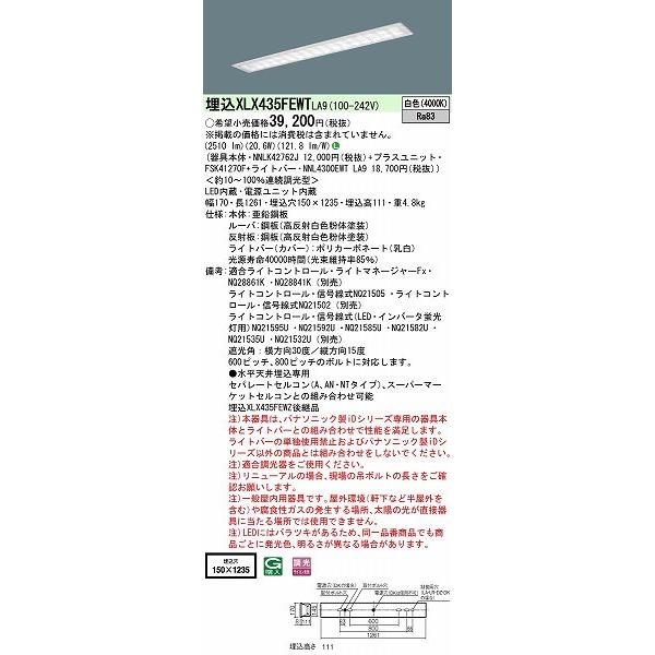 - XLX435FEWTLA9 パナソニック 埋込ベースライト 40形