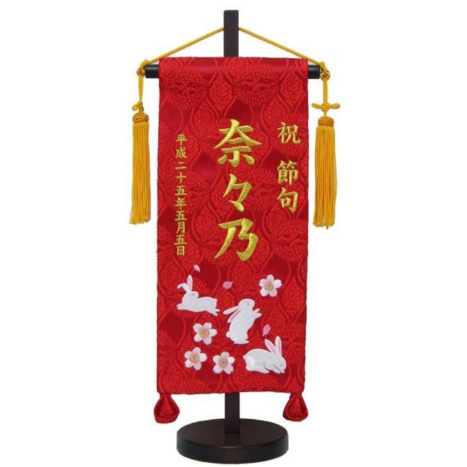写真立てオルゴール(朱赤)付 名前旗IU341台付 赤 花うさぎ(小)刺繍金糸 名前代込み 雛人形 ひな人形