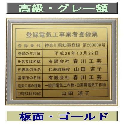 登録電気工事業者登録票【本物のコールド以上の輝き】グレー額入り・板面はゴールドペーパー/登録電気工事業者登録票 お洒落な登録電気工事業者登録票 額入