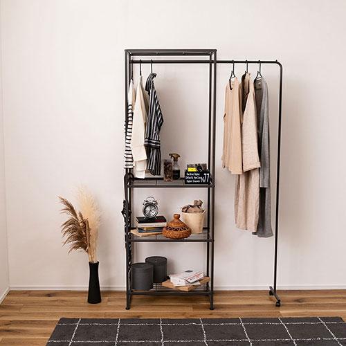 アジャスター付き(ラック) 伸縮可能2段階ハンガー付き キャスター付き(ハンガー)