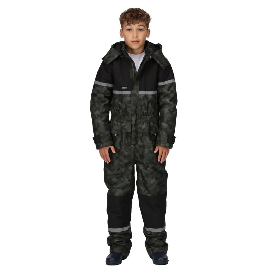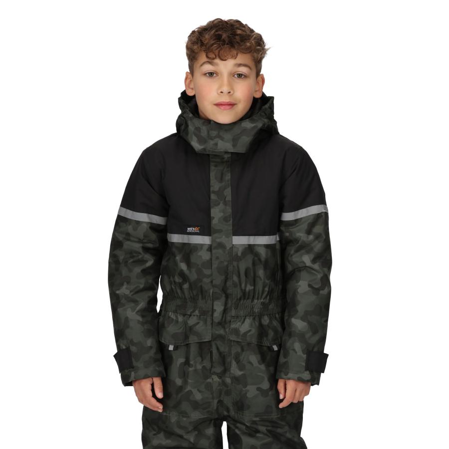 (レガッタ) Regatta キッズ・子供用 Rancher 迷彩柄 ウォータープルーフ レインスーツ オールインワン RG9258 (ブラッ