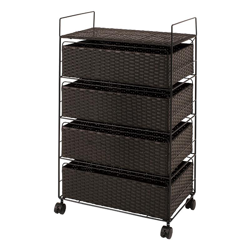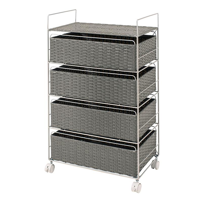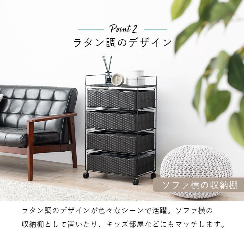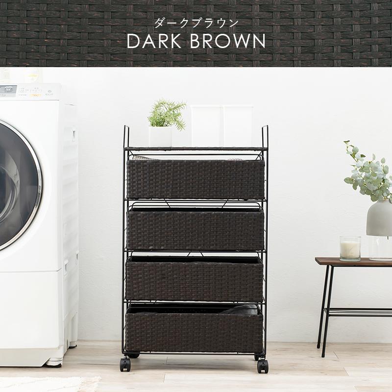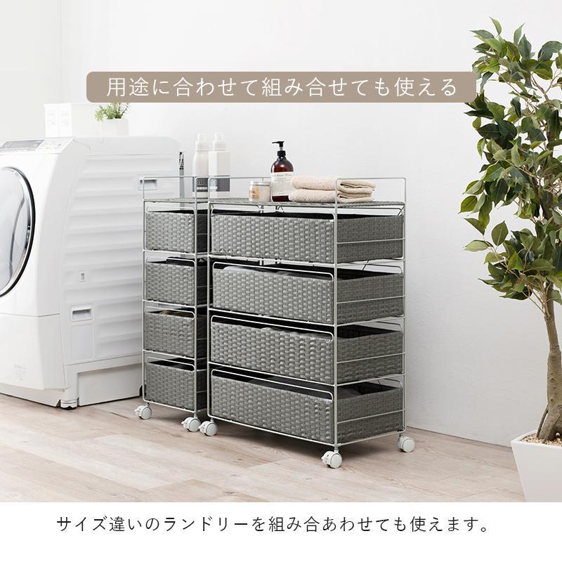 ランドリーチェスト ラタン 4段 引き出し 幅50 奥行30 スリム ランドリー収納 キャスター 籐 ワゴン カゴ 収納 薄型 ランドリーラック おしゃれ ロータイプ