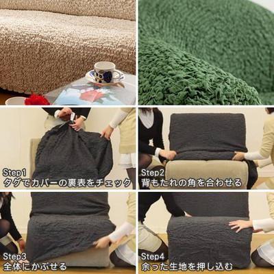 どんな形にも合わせやすい!かぶせたら余った部分をソファのすき間に押し込むだけ♪タテヨコ伸縮自在のストレッチ素材。