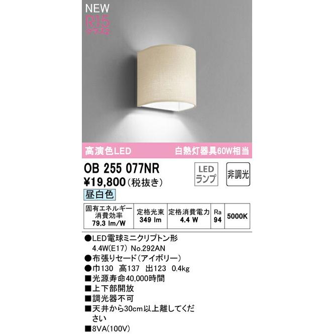 オーデリック ブラケットライト 【OB255077NR】【OB 255 077NR】 ブラケットライト【決済・後払い決済】【純正品】