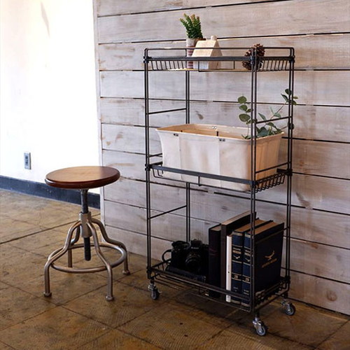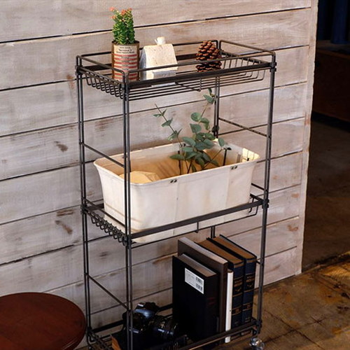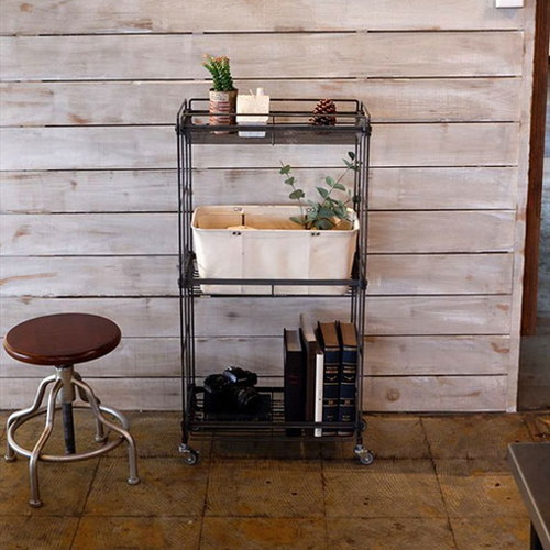 【商品説明】ユニセックスで普遍的な佇まいはどんなインテリアとも調和し、シンプルながら存在感を発揮します。【商品詳細】サイズ:約W514×D264×H961mm(収納部:約W425×D214×H393mm)重量:約6.6kg材質:本体:スチール(粉体塗装)※鉄本来の風合いを残すため、クリア塗装で仕上げております。キャスター:エラストマー耐荷重:上段:3kg、中段:5kg、下段:10kg生産国:中国【特長】スタイリッシュ、かっこいい、インダストリアル、アイアン、シェルフ、収納、ワイヤー、ワイヤーシェルフ、ラック、オープンラック