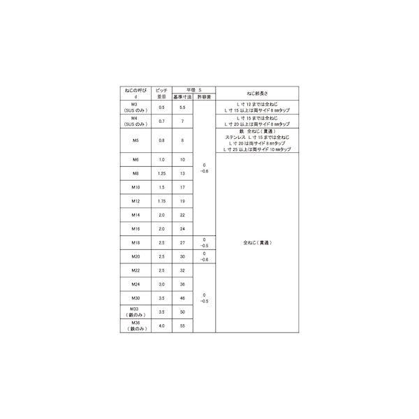 寸法によっては、全ねじ(貫通タップ)ではない寸法がございますので、「図面/規格」にてご確認お願い致します