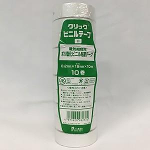 因幡電工 ケース販売 200巻セット ポリ塩化ビニル粘着テープ クリック 電気絶縁用 19mm×10m 白 クリックVT19×10シロ_200set