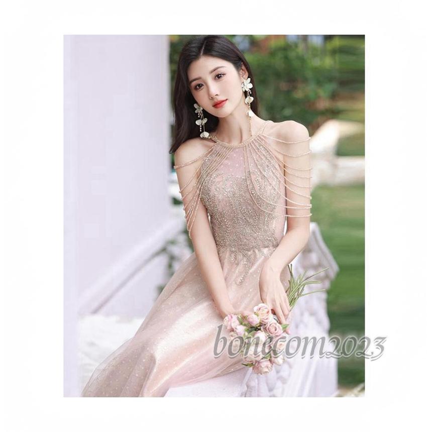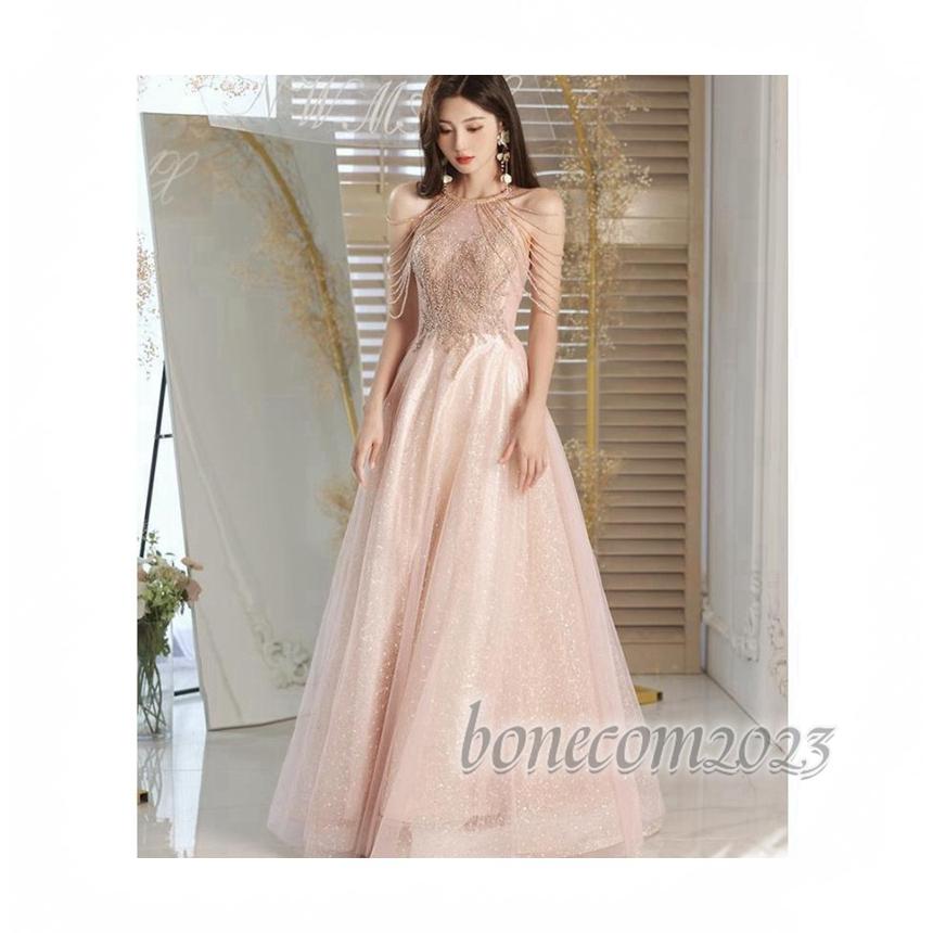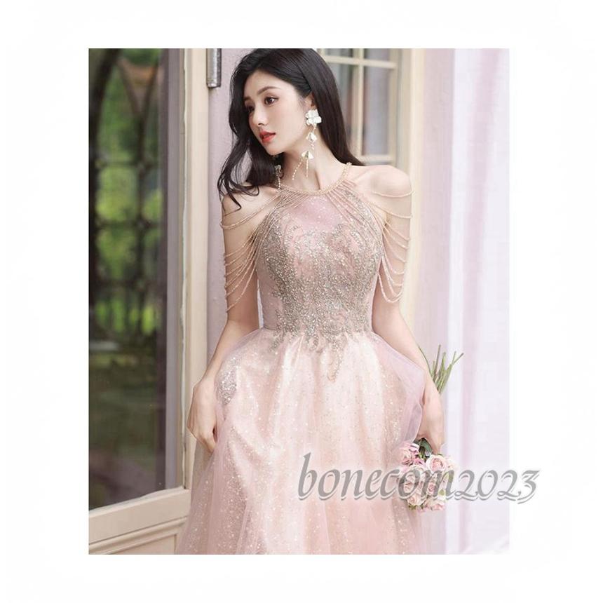 丸首 ノースリーブ エンパイアライン クルーネック 可愛いビーズ スパンコール 前撮り パーティードレス ワンピース レディース 花嫁ロングドレス