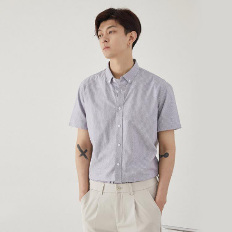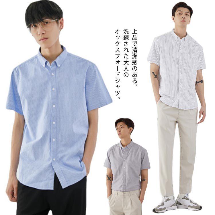 送料無料半袖シャツ メンズ カジュアルシャツ ボタンダウンシャツ オックスフォード ストライプ柄シャツ ワイシャツ 半袖 Yシャツ すっきり アメカジ