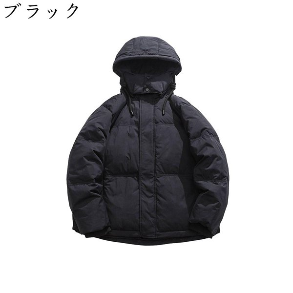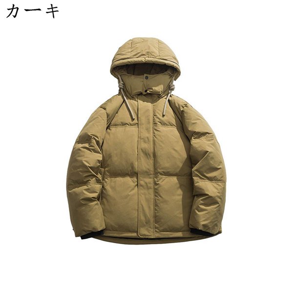 ダウンコート ユニセックス 長袖 冬 防寒着 暖かい コート フード付き ジッパー アウトドア カジュアル ゆったり ボリュームネック