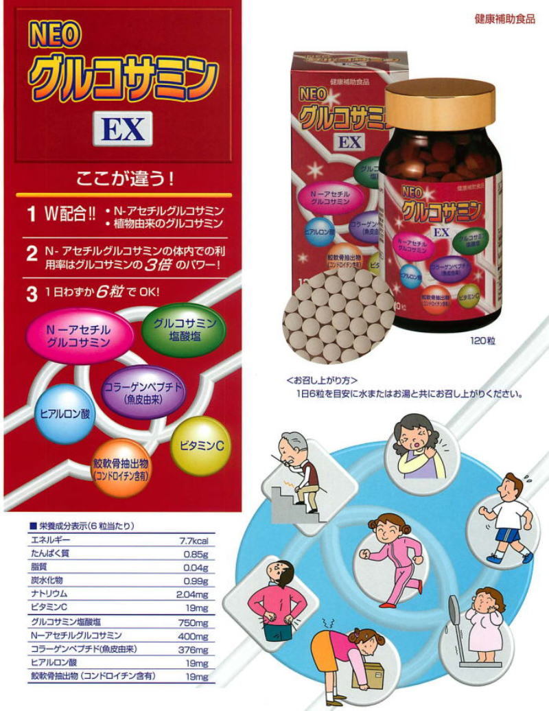 グルコサミン サプリ ネオグルコサミンEX 120粒×2個 送料無料 1日6粒中グルコサミン1150mg コラーゲン・ヒアルロン酸・コンドロイチン配合