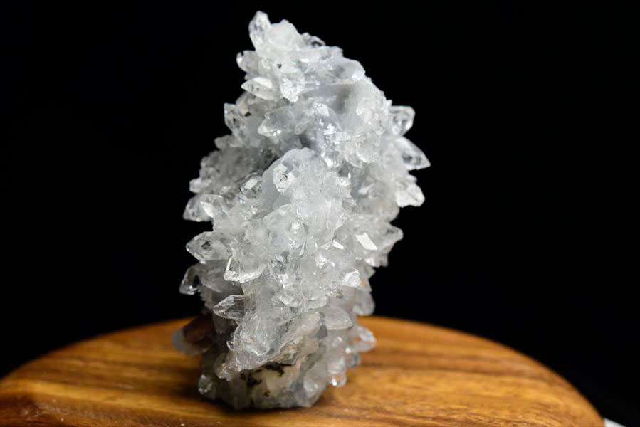 【石の名前】インド・プーナ産アポフィライト(魚眼石)クラスター原石【サイズ等】重さ:約181.7g大きさ:約65mm×約46mm高さ:約81mm【天然石の意味】浄化人生の指針目標達成開運アポフィライトの世界的産地【インドデカン高原プーナ(プネー)産】のアポフィライトのクラスター原石。透明度が高く、ダメージの少ない逸品を厳選して参りました。アポフィライトは、柱状や正方錘状の結晶を持ち、ひとつひとつの結晶が複雑に入り組んだ群晶が水晶とは違う神々しい輝きを魅せてくれます。置く場所を選ばない、お手頃サイズのアポフィライト。玄関やリビング、デスクまわりのちょっとしたインテリアとしてもオススメです。進むべき道を照らしだすアポフィライトは、目標達成の為に新しい一歩を踏み出す勇気を与えてくれるとされています。また、優れた浄化力と思い込みやネガティブな固定観念から解放してくれるパワーを持つといわれ、なんとなく疲れが溜まっている、何事にも気力が湧かないという時にもオススメのストーンです。多方向に反射する小さな光が、お部屋やお店等の空間を美しく清らかな雰囲気へと一変させてくれるような原石です。"}