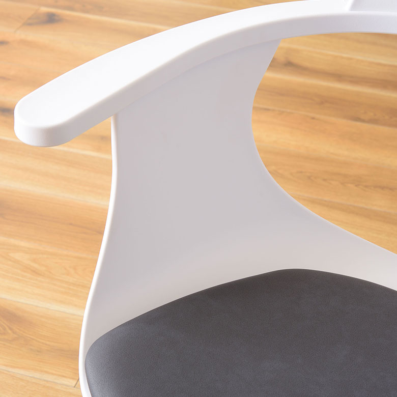 肘掛けはなめらかなカーブで握りやすく、座面は適度なクッション性で疲れにくい。