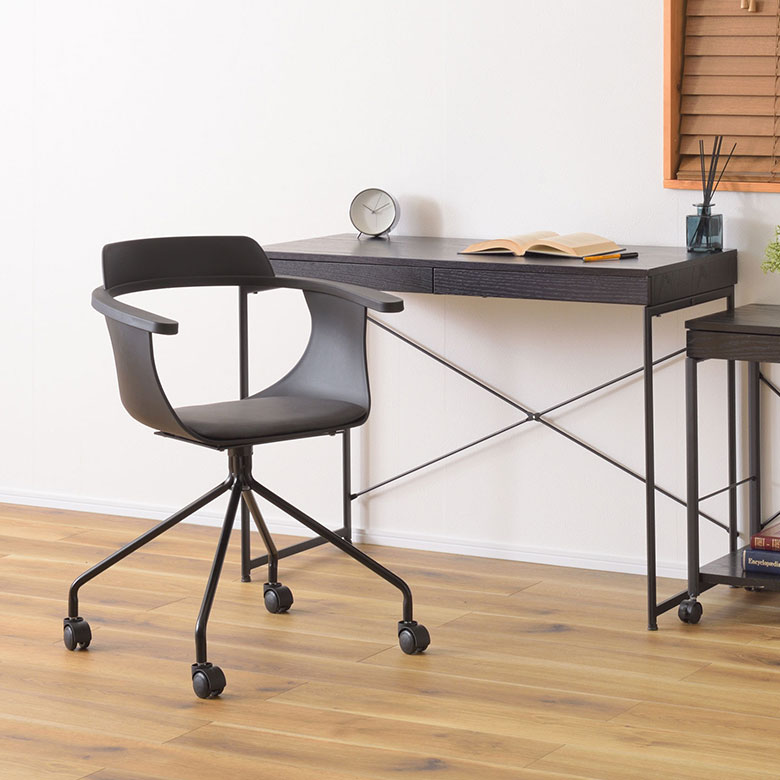 圧迫感のない開放的なフォルムで、デスク周りをおしゃれに演出します。