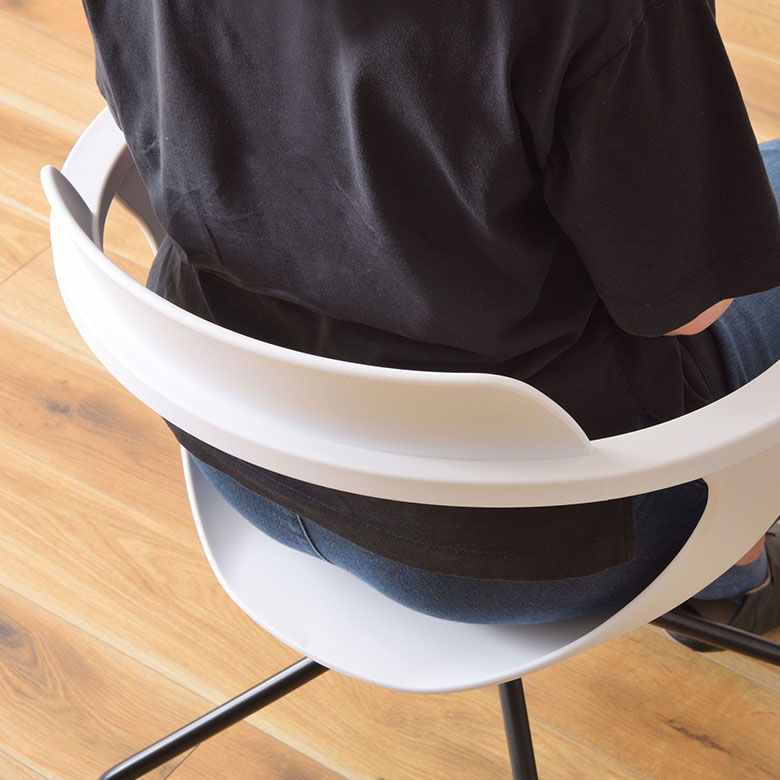 大きく空いた背もたれは蒸れにくい設計。