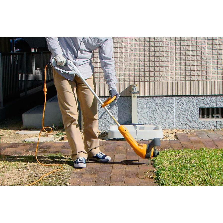 ●ワンタッチで長さ調整ができる伸縮機能付 ●キワ刈りに便利なエッジガイド付【仕様】 長さ(最短)1,256、(最長)1,336×幅237×高さ276mm ナイロンカッタ: φ1.6mm 刈幅: 250mm 回転数: 11,000min-1 単相100V・4.3A 消費電力:400W 質量:2.1kg