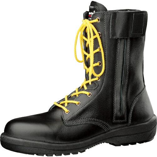 [特長]●発泡ラバーと無発泡ラバーの2層構造のソールでクッション性、軽量化、耐久性を実現しました。●耐熱性・耐薬品性に優れた靴底です。●JIS耐滑性能「F」合格の滑りにくい靴底です。●親指をまっすぐに伸ばして、快適に着用できるワイド樹脂先芯を使用しています。●靴底から静電気を逃し、スパークを防止します。[用途]●建設業。●製造業。●運輸業。●点検・整備。●物流。●引っ越し。●ビルメンテナンス。●清掃。[仕様]●寸法(cm):26.5●足幅サイズ:EEE●色:ブラック●耐圧迫荷重(kN):10±0.1●電気抵抗値:1.0×10[[の5−7乗]]Ω(23℃ C1)●JIS T8103 (EDX-P/C1)/C1/S/P1/F1[材質/仕上]●先芯:ワイド樹脂●甲被:牛クロム革(ソフト型押)●中敷:EVA2層カップインソール(抗菌・防臭)●靴底:ラバー2層底[注意]●中敷きを交換する場合は、ミドリ安全が推奨する同等品を使用してください。(JIS T8101安全靴の規定より)●質量は26.0cmを基準にした標準質量です。