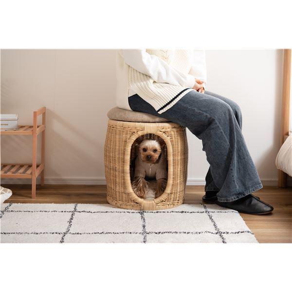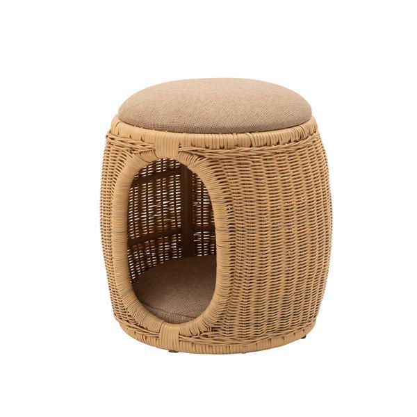 入ったり乗ったり座ったりと、ペットの可愛らしい姿を楽しむことができるスツール。中敷きのクッションやフタが外れる仕様になっており、物を入れたり植物を飾ったりとアイデア次第で様々な使い方ができます。軽やかな編み目とナチュラルテイストな色味が優しい雰囲気を作り出してくれます。
