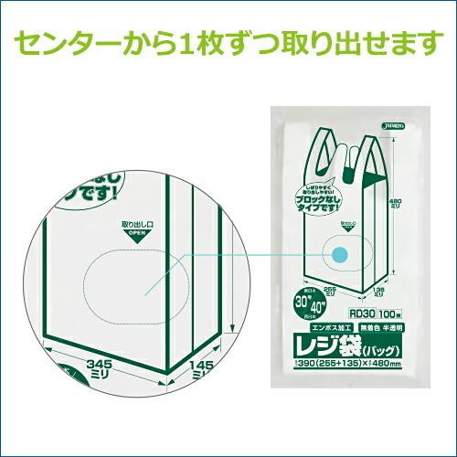 ノンブロックベロ付きの半透明レジ袋省資源タイプ。エンボス加工し本体の厚みを薄くしたので、経済的かつ省資源で環境に優しいです。吊り下げ可能な丸穴はついておりません。非食品用です。【商品詳細】●品番:RD30●サイズ(ヨコ×タテ):約390(255+135)×480mm●厚み:0.013mm●材質:HDPE●カラー:半透明●入数:3000枚(100枚×10冊×3箱)【送料】■全国送料無料※沖縄・離島への配送は対応しておりません。※御注文時に法人名や店名等のご入力をお願い致します。【サンユー印刷は、2023シーズン J1リーグへ昇格した「アルビレックス新潟」のオフィシャルクラブパートナーになりました。悲願のJ1復帰で新たな挑戦をするクラブを地元企業として微力ながらサポートさせていただきます】"} エンボス加工し本体の厚みを薄くしたので、経済的かつ省資源で環境に優しいです。