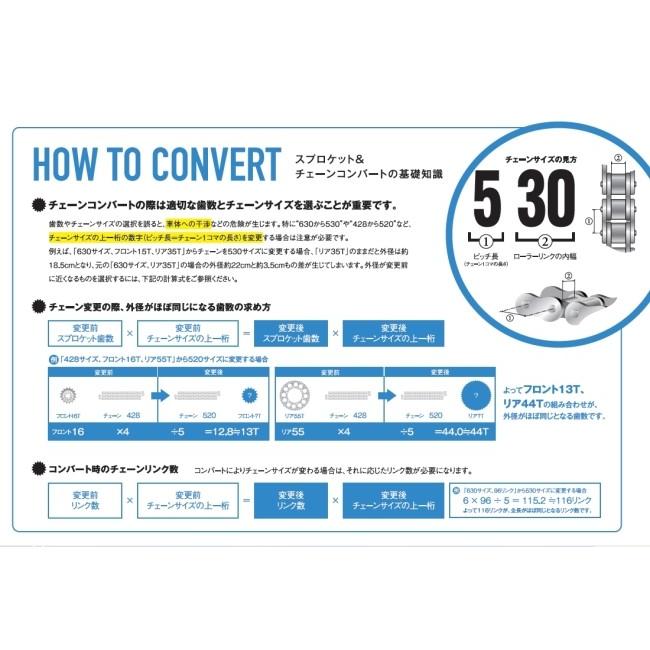 ※コンバート用設定の適合車両には、純正サイズのチェーンは使用することが出来ず、チェーンサイズのコンバートを行わなければ使用する事ができません。