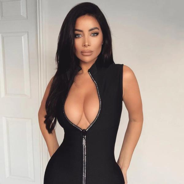 バンテージ ボディコン ドレス ミニ ノースリーブ Vネック ジッパー セクシー レディース