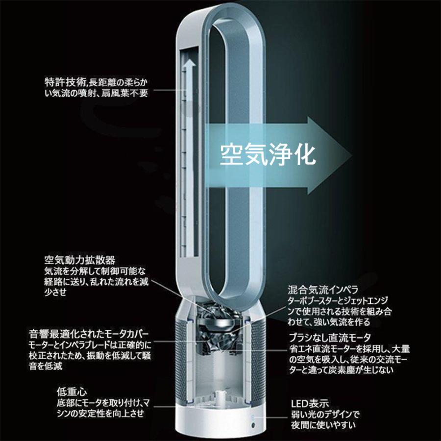タワーファン 冷風 スリム扇風機 羽なし 空気清浄機 脱臭 首振り タイマー機能 空気清浄機能付 タワーファン 羽根無扇風機 リモコン付 暖風なし