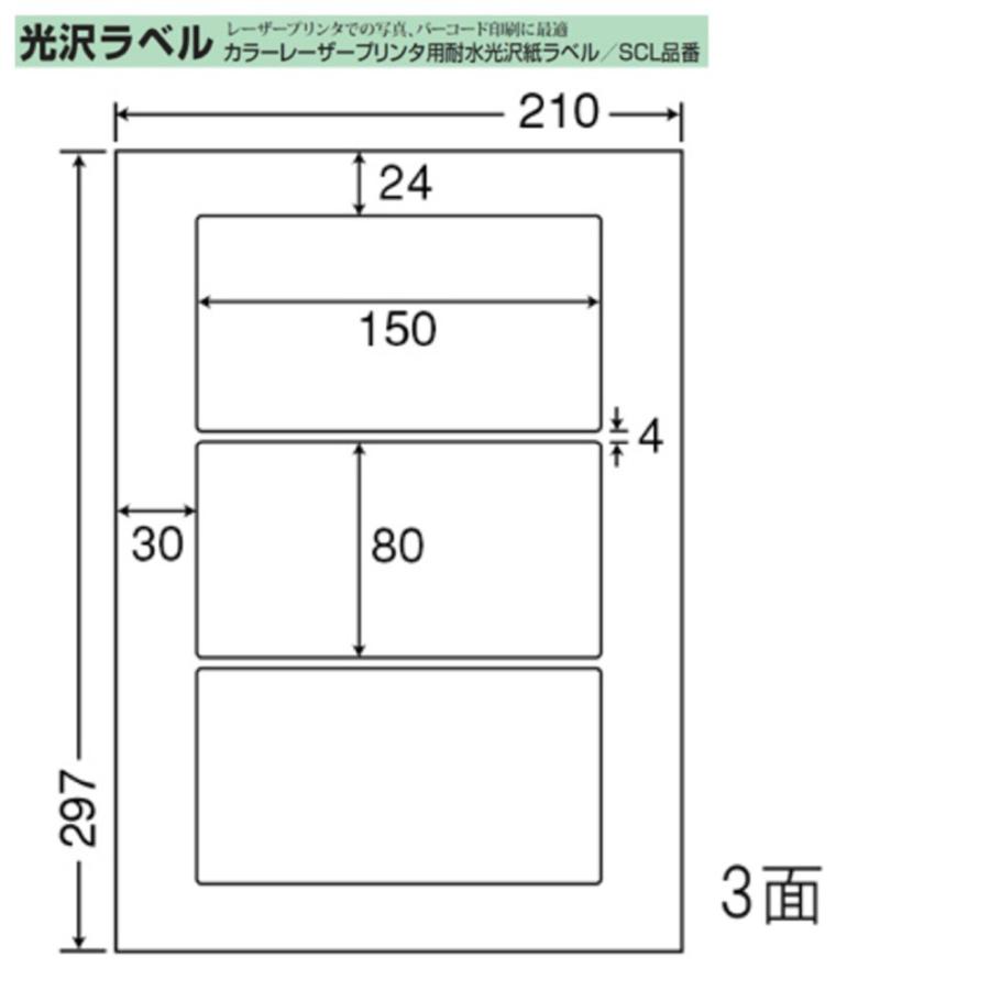 東洋印刷 nana カラーレーザー用光沢ラベル 3面 SCL-26 < 1ケース>レーザープリンタ用