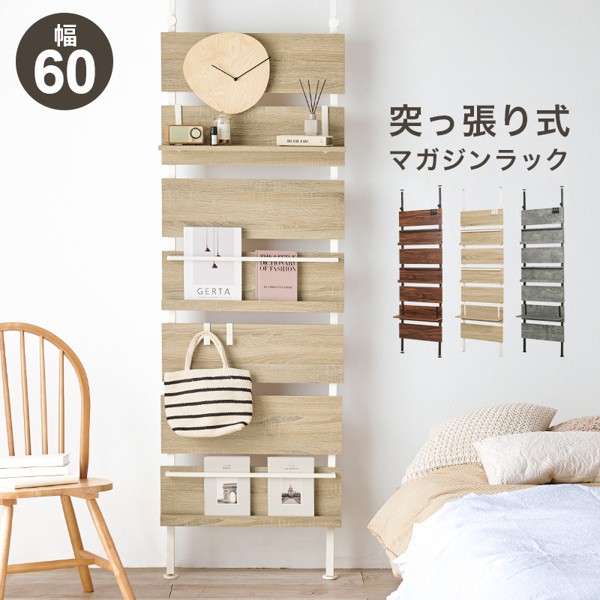 本棚 突っ張り 薄型 おしゃれ 木製 棚 書棚 収納 オープンラック マガジンラック ディスプレイラック 北欧 幅60 壁面収納 ウォールラック 賃貸 一人暮らし ID005