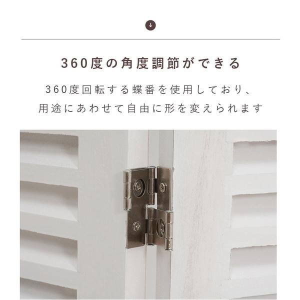 ■商品説明お部屋をシャビーな空間に変えるパーテーション●部屋の仕切りや目隠しなどに幅広く使える天然木のお洒落なパーテーションです。●空間を区切って生活感を隠すだけでなく置くだけでカフェのような空間を作れます。●ルーバータイプで板の隙間から光や風を優しく通します。●木材部分には木の素材感を活かしながら、使い込んだようなアンティーク加工を施しています。※使い込んだ風合いを表現するためにキズや塗りの濃淡をあえて残しています。●360度回転する蝶番を使用しており、用途に合わせて自由に形を変えられます。●小さく折りたためるので、移動や収納も簡単です。●桐材を使用しているので軽くて扱いやすいのも魅力です。■商品詳細サイズ(約):幅40×高さ148cm×3連3枚を広げたサイズ:幅120×高さ148cm素材:主材:桐材組立:完成品