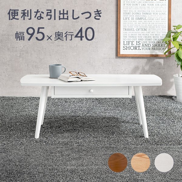 センターテーブル ローテーブル 幅90cm 幅100 引き出し 引出し 収納 白 長方形 角丸 おしゃれ 北欧 モダン リビング 低い ひとりぐらし 一人暮らし 新生活 ID005