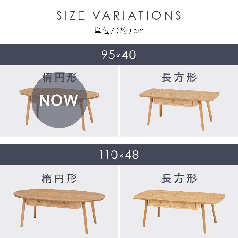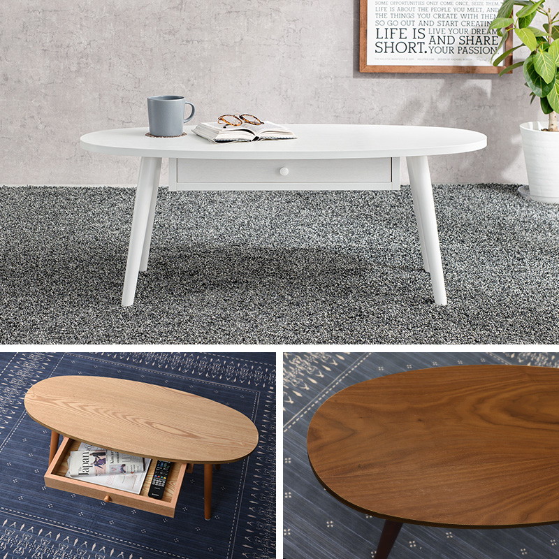 テーブル 木製 センターテーブル 引き出し付き 楕円形 おしゃれ 天然木 幅95 奥行40