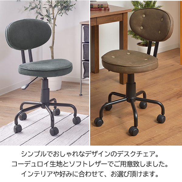 デスクチェア 1脚 チェア 椅子 いす PCチェア 書斎 オフィスチェア キャスター付 モダン おしゃれ 昇降機能 ソフトレザー張り 布張り スチール デスクチェア