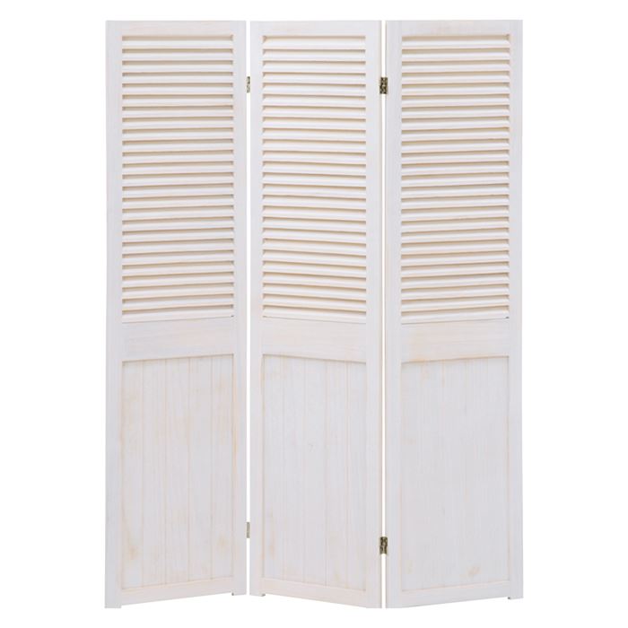 間仕切り 衝立 パーテーション 通販 MS-5913AW シャビーウッドファニチャー ついたて パーティション 部屋 仕切り 目隠し 折りたたみ 3連 ルーバー 室内