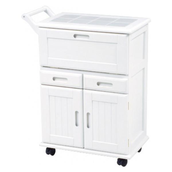 萩原 キッチンワゴン (約)幅59×奥行30×高さ73cm MW-3709WH 4934257128513●キャスター付きで移動も楽々なシンプルなキッチンワゴン。天板はタイル張りなので熱い鍋、やかんなどを直接置くことが可能です。《家具 インテリア》※画像はイメージです。
