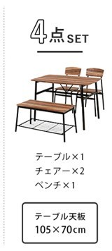 | 【商品名】 | ダイニング 3点セット 幅70cm ブラウン LDS-4893BR |