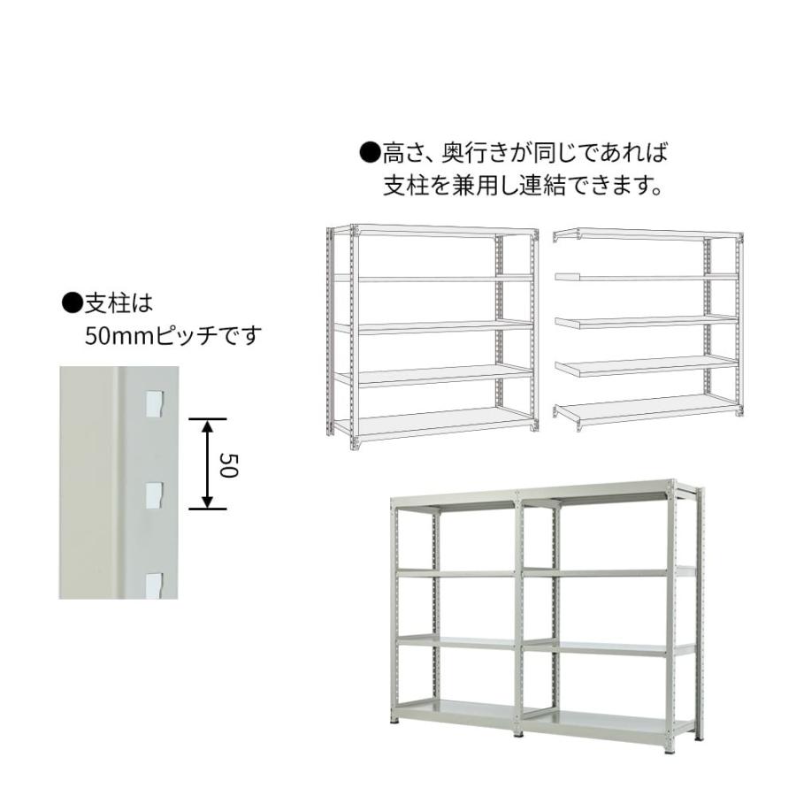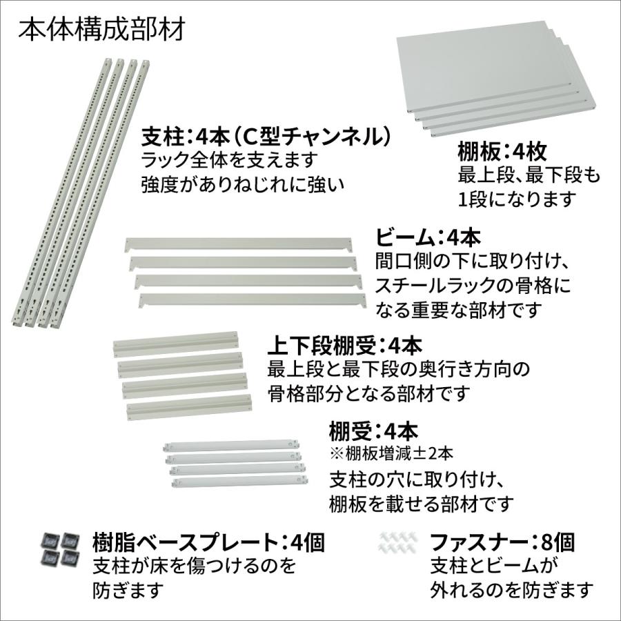 スチールラック スチール棚 業務用 高さ1800×幅1200×奥行300mm 2段 単体 MK中軽量 200kg/段(ボルトレス) ライトアイボリー (27kg)