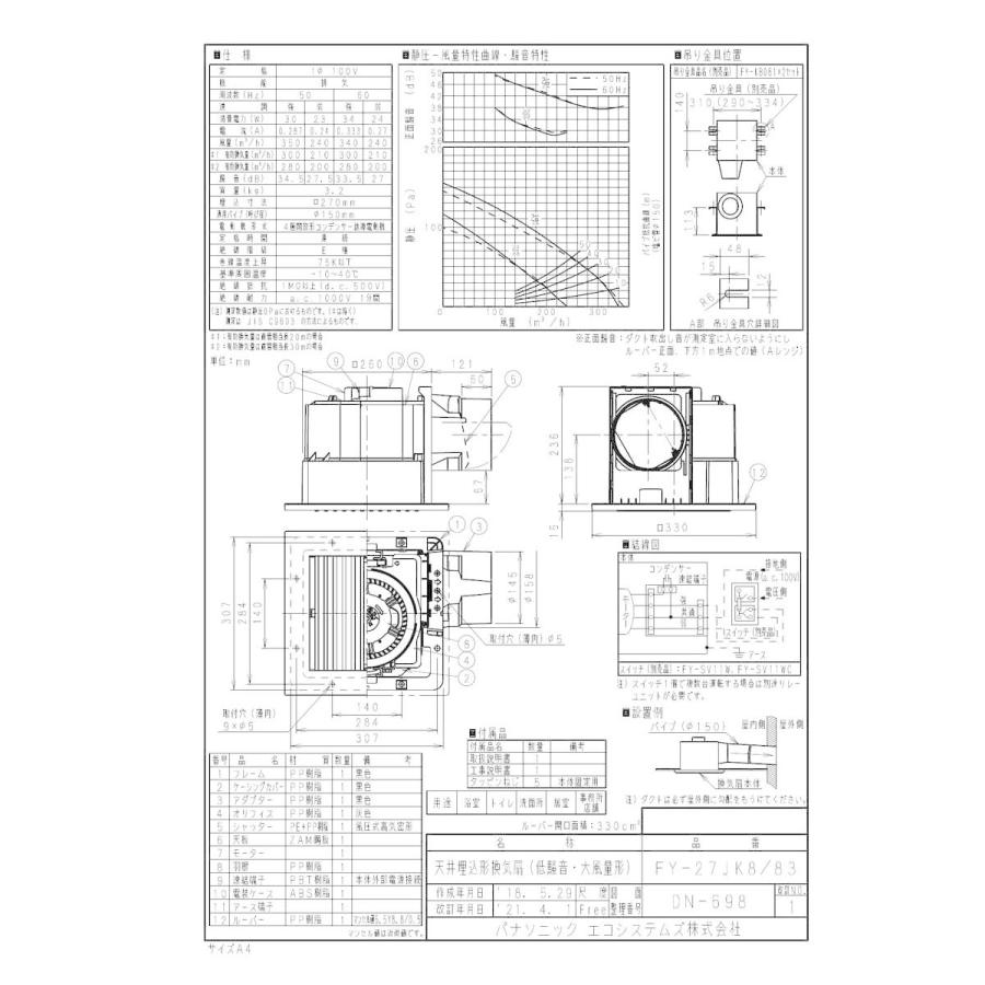 【FY-27JK8/83】 《KJK》 パナソニック 天埋換気扇 本体・ルーバーセット ωβ0