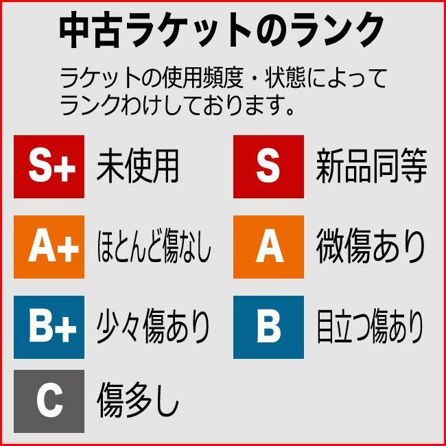 フレームには大きな目立つようなキズはありません。細かいキズが多少ありますが気にならない程度で状態が良いラケットです。