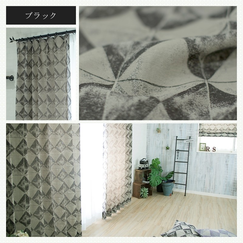 こちらは大胆なデザインながらシックなカラーリングで落ち着いた印象のカーテン。北欧モダン(スカンジナビアンモダン)のインテリアとのコーディネートがおすすめ。