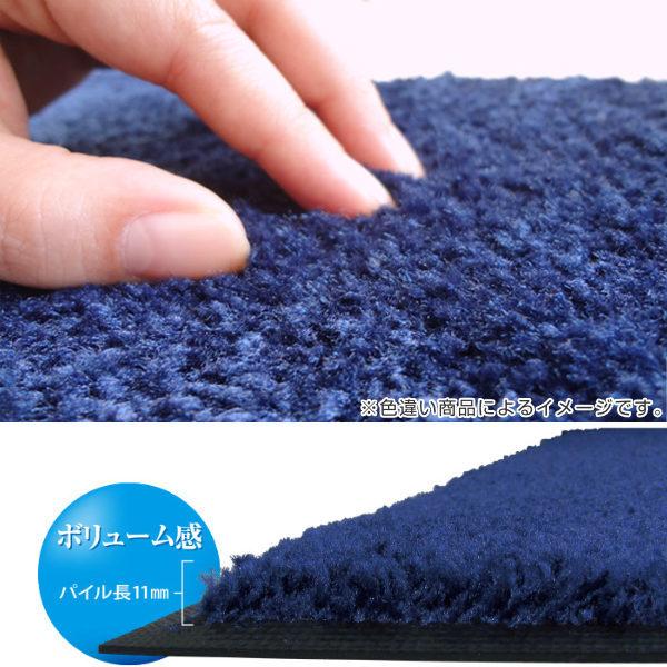 原着ポリエステルを使用し、高級感のある豊かな風合いとツヤ感が特徴です。長さ11mmのボリューム感のある高密度パイルは、しなやかで弾力性が高いので、多くの人が通っても型崩れしにくいです。