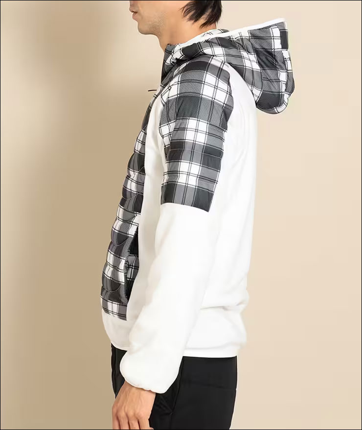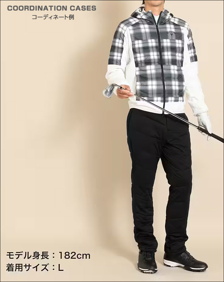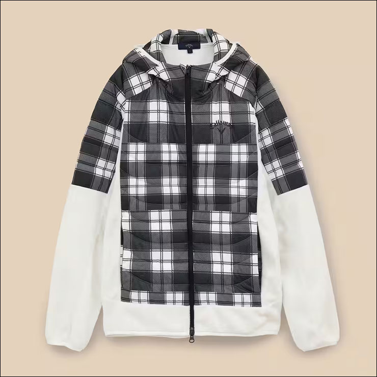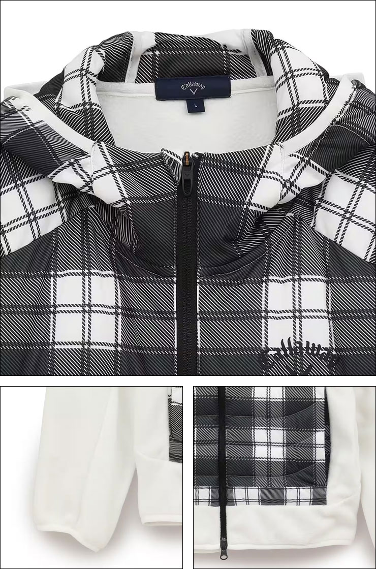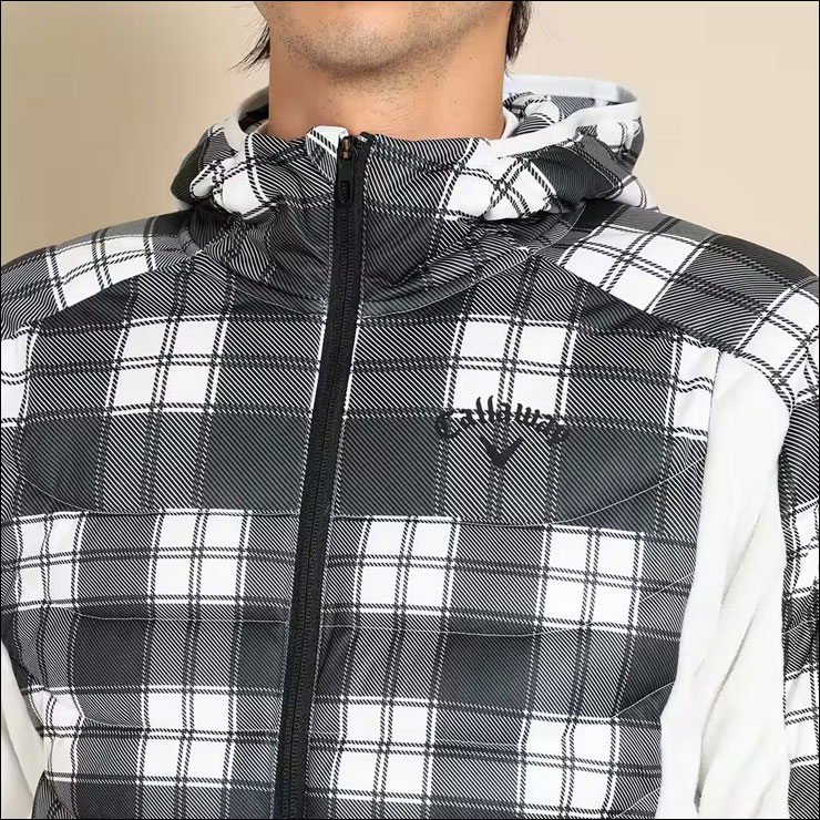 前身とフードにチェックプリントのスターストレッチ素材、袖と後身には両面起毛のフリースと、異素材をハイブリッドさせたミドラーです。暖冬が続く冬の季節に最適で、中綿アウターよりも早い時期から着用できるので、幅広いシーンで重宝します。ミドラー以上アウター未満の、ユーティリティーなアイテムです。<スターストレッチeco>高ストレッチ、撥水性、防風性、透湿性、リサイクル原料を100%使用した素材中綿仕様《素材》表生地 ポリエステル 100%別布 ポリエステル 100%裏生地 ポリエステル 100%中わた ポリエステル 100% CALLAWAY APPAREL GOLF 石川遼 オススメ おすすめ ゴルフ ゴルフ用品 ウエア アパレル ゴルフウェア 洋服 男性 メンズウェア トップス スウェット スエット フード パーカー ジップアップ チェック スターストレッチ ストレッチ 起毛 フリース 異素材 ハイブリッド ミドラー 中綿 撥水 防風 透湿 白 ホワイト 黒 ブラック CW23FWWEAR