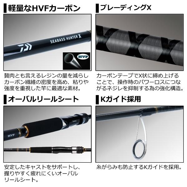 全長(m):2.82継数(本):2仕舞寸法(cm):145自重(g):145先径/元径(mm):2.2/13.4ルアーウエイト(g):10-50適合MFライン(lb):10-20適合PEライン(号):0.8-2.0シーバスフィッシングを思いっきり楽しめるシーバス専用の本格ロッド。ソルト用の重いルアーをしっかりと弾き飛ばす高品質なカーボンブランクと、手にフィットして正確なキャストやアクションをサポートするダイワオリジナルのリールシートを搭載。糸がらみしにくいKガイド採用。シーバスゲームはここから始まる。