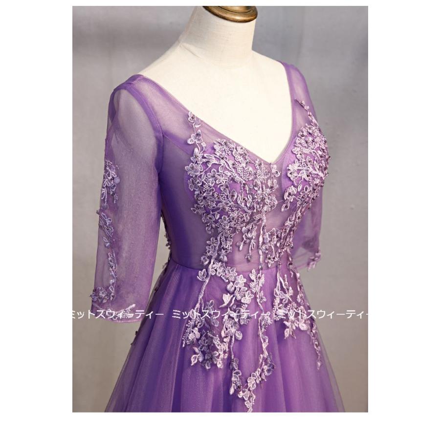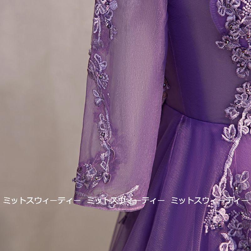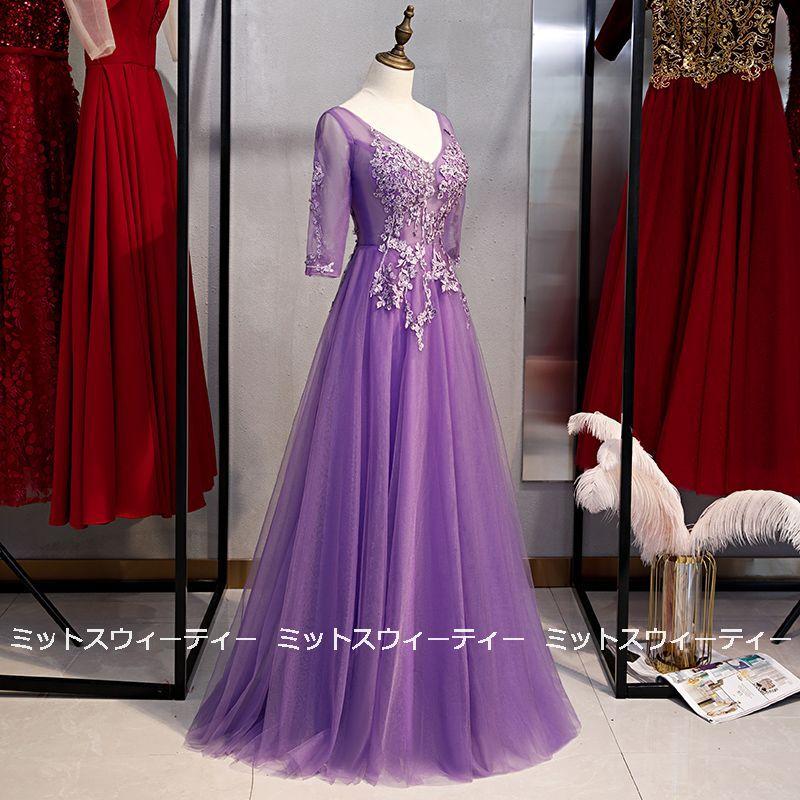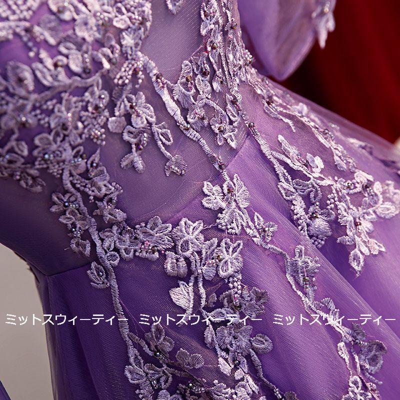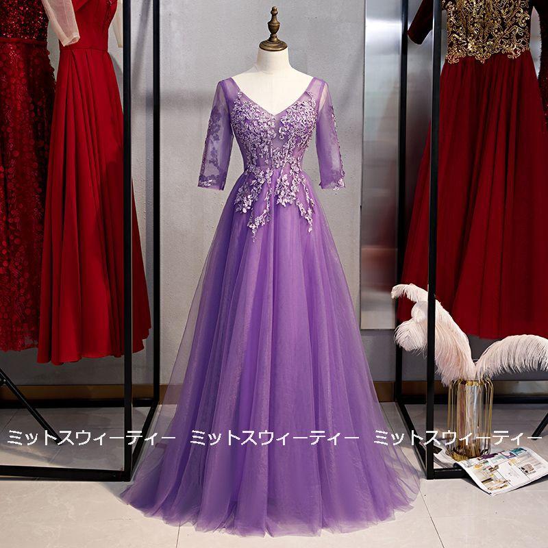 カラードレス パープル ロングドレス 演奏会 コンサート 二次会 Aライン ステージ衣装 パーティードレス 披露宴 発表会 大きいサイズ セレモニー 30代 40代