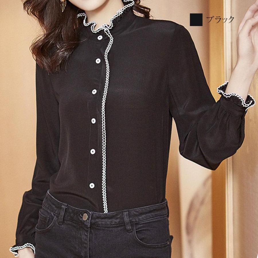 ブラウス レディース フリルシャツ おしゃれ 秋 黒 カットソー Tシャツ フリル レース オフィス ワンピース 長袖 白 フォーマル 高品質 人気 シフォン 春 シャツ