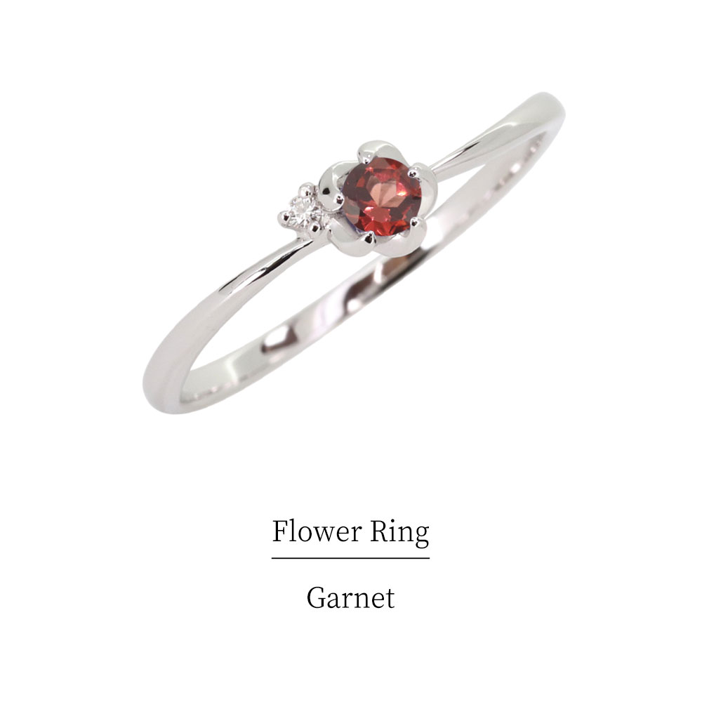 指輪 ガーネット 花 フラワー シルバー ピンキーリング レディース クリスマス