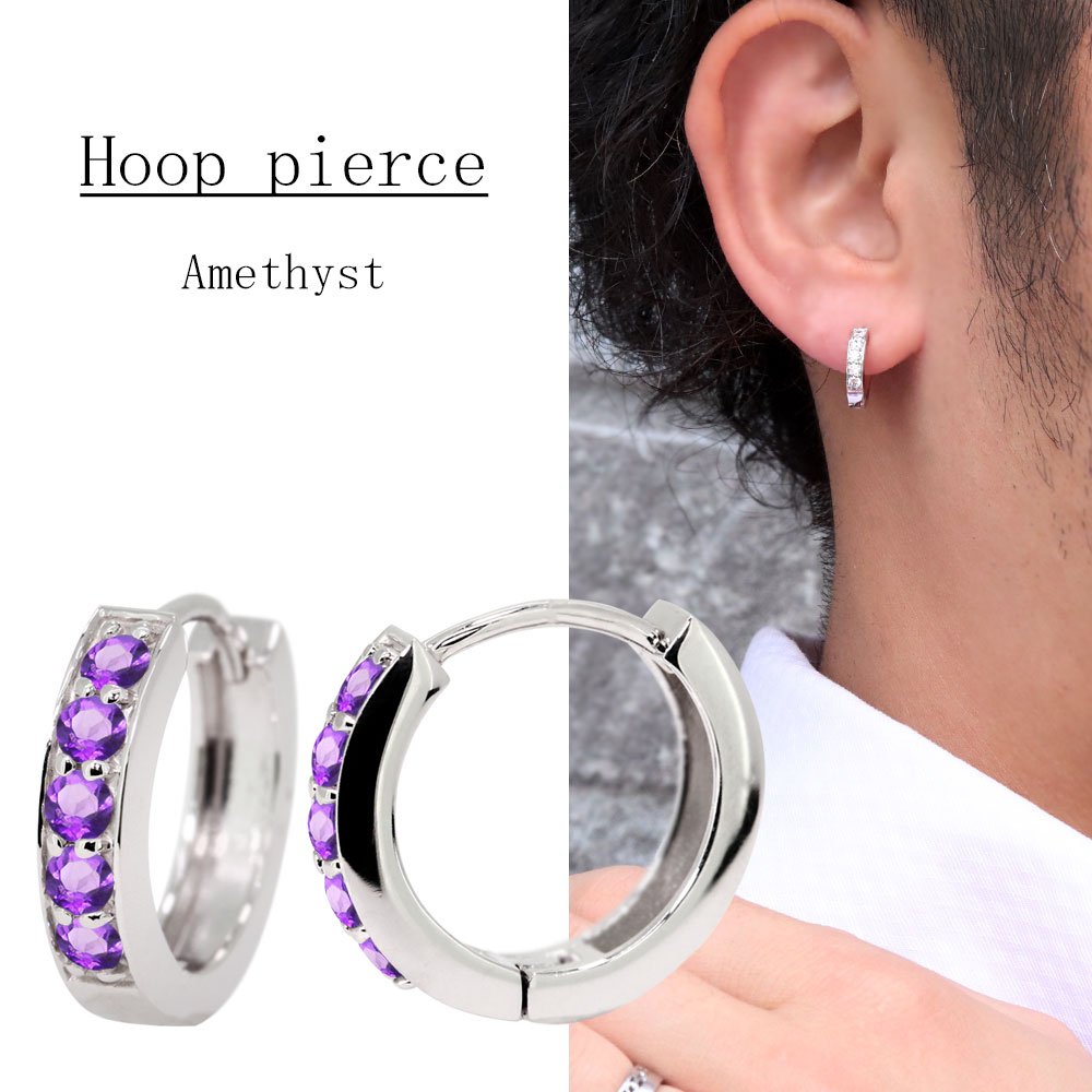 2月誕生石アメジストを使用したシルバー製の、ハーフエタニティタイプのメンズフープピアスです。※【カラー3色から】お選び頂けます。※【片耳】価格です。両耳1ペアをご希望の場合は、2個ご購入下さい。■本体素材:シルバー925(ホワイトコーティング/イエローコーティング/ピンクコーティング)(品質を保証するSV925 or SILVERの刻印があります。)■石名:アメジスト (約2.0mm*5石 天然石使用)■サイズ:縦 約12.5mm 横 約13.7mm 内径 約9.7mm■品番:mp-0169-2-sv-5【20231002】"}