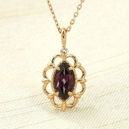 ネックレス ロードライトガーネット ダイヤモンド0.01ct 10金ピンクゴールド(K10 PG) ギフト プレゼント