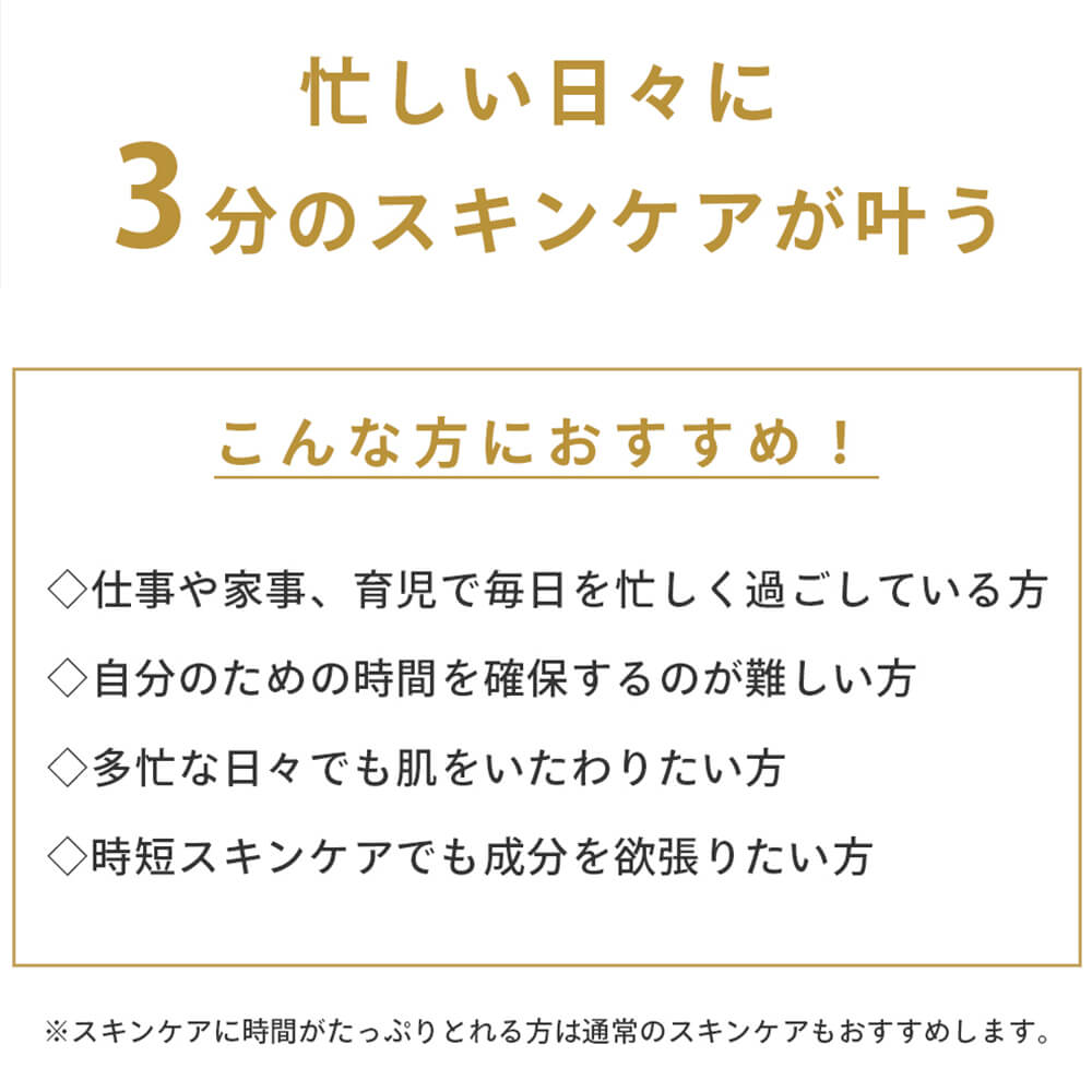 | W洗顔なし!まつエクOK! 忙しいママが開発したキレイを早くをコンセプトにつくられたスキンケア |