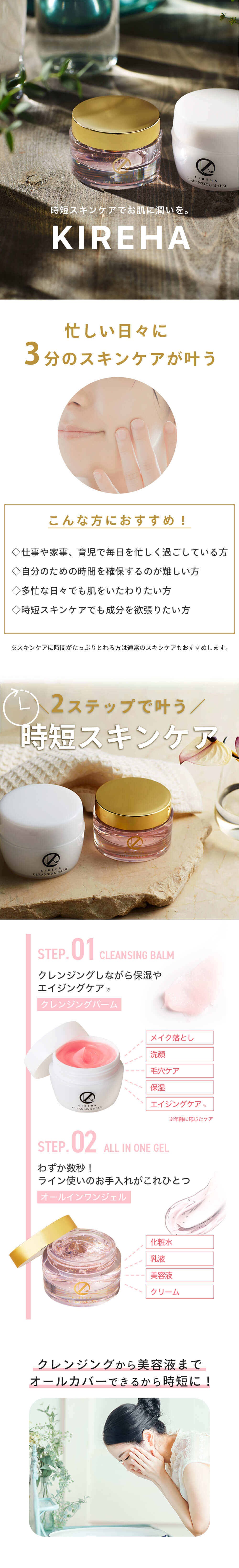 クレンジングバーム オールインワンジェル 毛穴 エイジングケア 美容液 くすみ 金箔 セット スキンケア 洗顔 ニキビ ダブル洗顔不要 化粧落とし メイク落とし 毛穴 バーム 黒ずみ 角質ケア まつエクOK ヒト幹細胞 ヒアルロン酸"} 時短でスキンケアができるKIREHA 2点セット