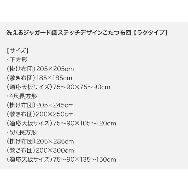 こたつ敷布団 200×250cm ラグタイプ おしゃれ 洗えるジャガード織ステッチデザイン